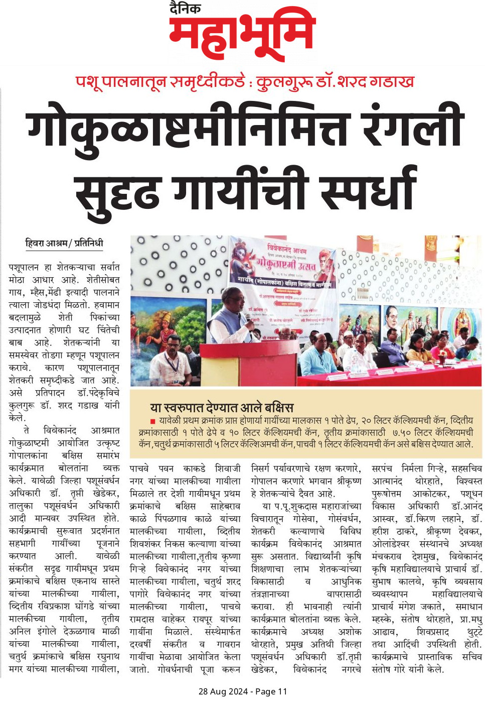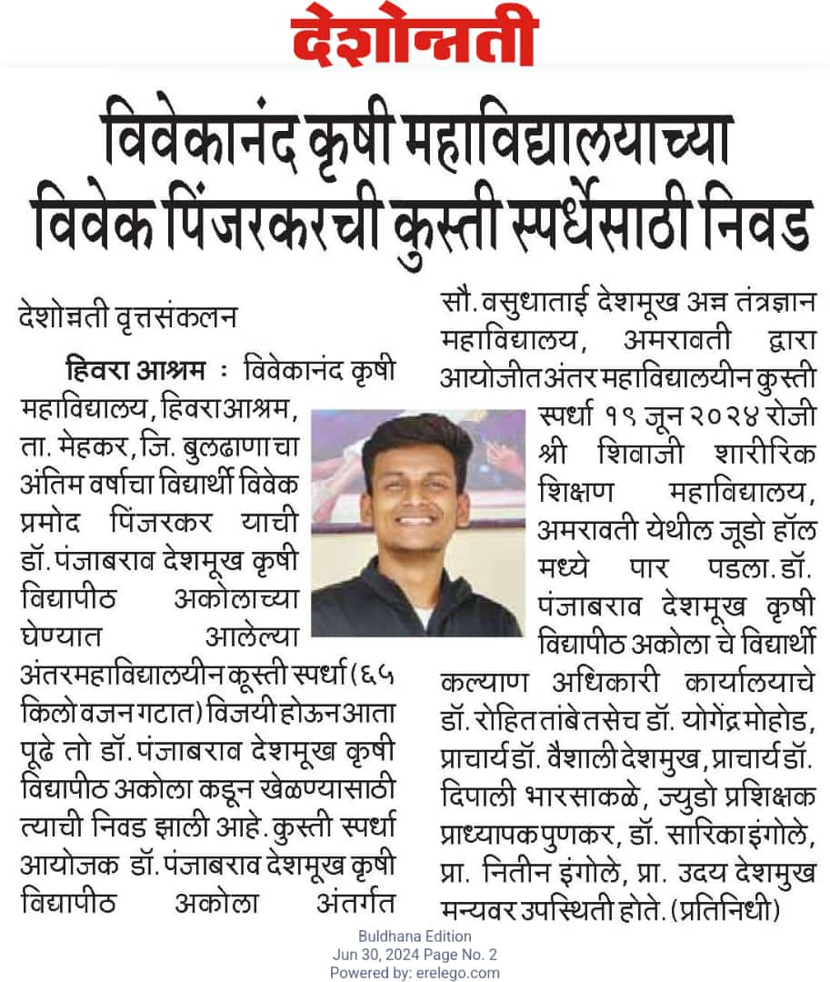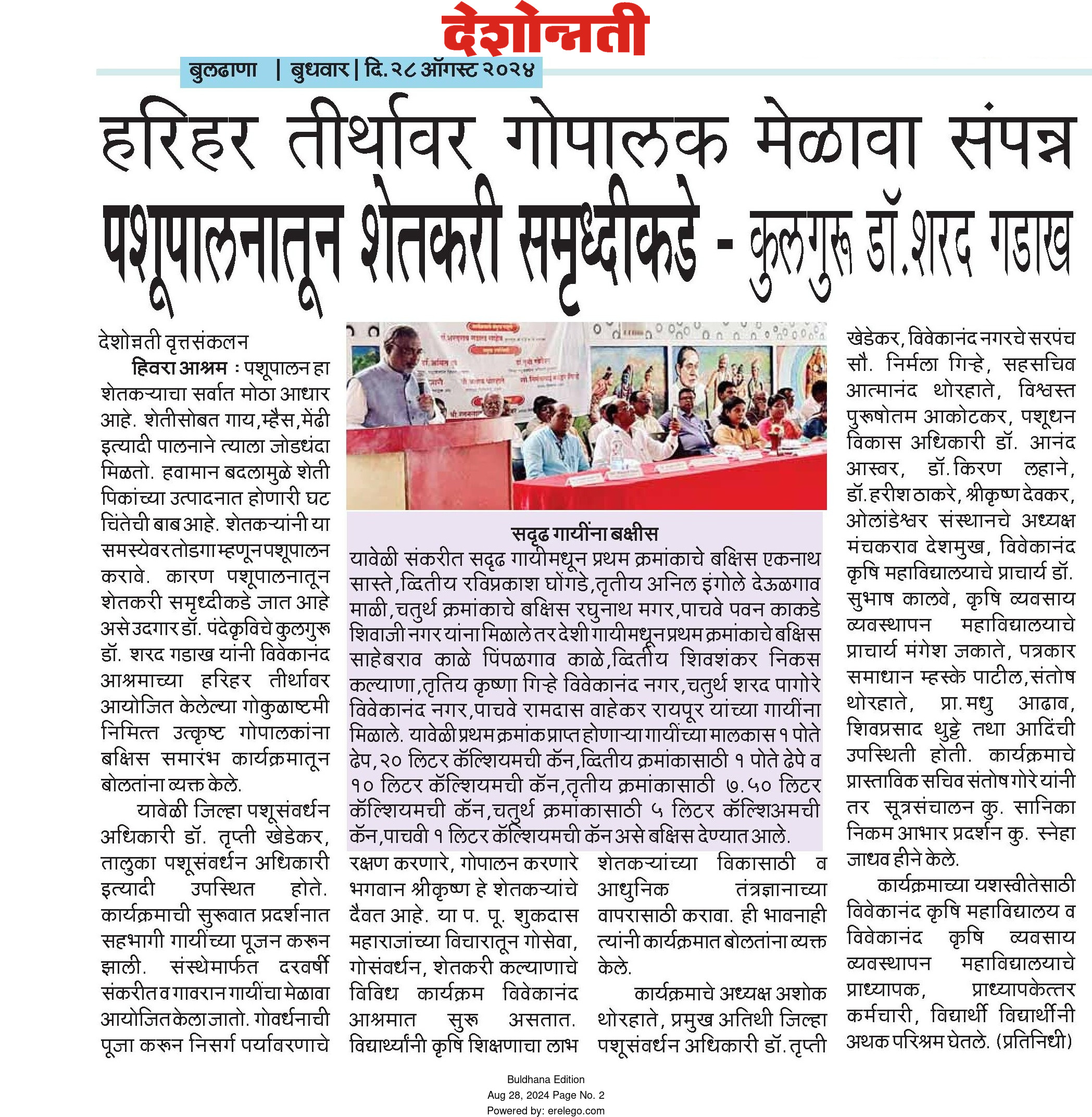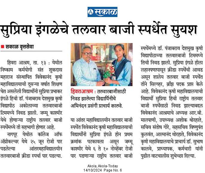 The Vivekanand Agriculture College was established in the year 2003, at the holy place of Vivekanand Ashram. The famous Vivekenand Ashram situated in the Hiwara village of the western Vidarbha district of Buldhana in Maharashtra state. On 14th of January 1965, the auspicious day of Makar Sankaranti, a visionary saint Swami Shukdas Maharaj established a charitable trust Vivekanand Ashram's in the memory of his mentor Swami Vivekananad. Shukdas Maharaj was a true social worker and reformer whose main objective was to helping the rural poor masses. Through this Trust he extended a lot of help to the poor, the sick...Read more...
